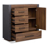 | Storage Options | Four drawers and a cabinet with two shelves. |