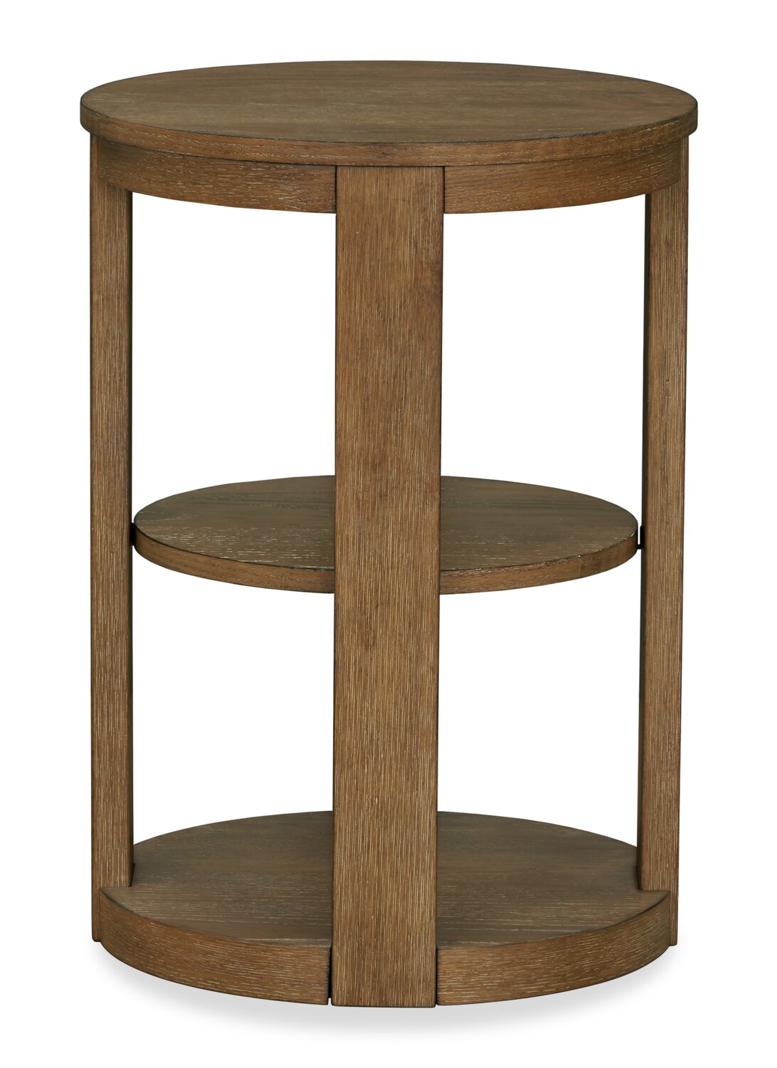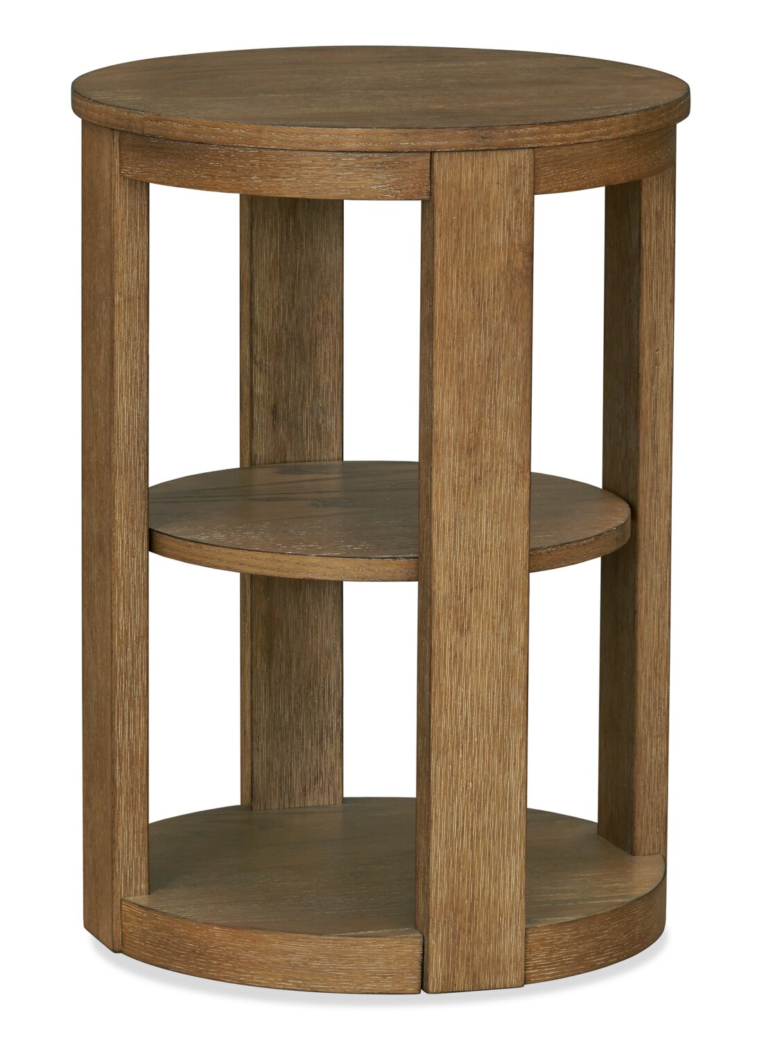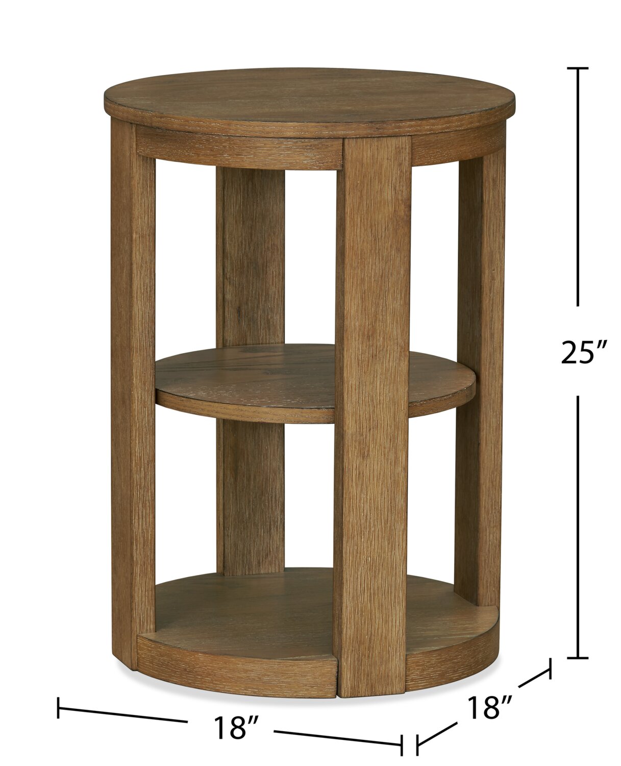 Declan 18" Modern Round End Table with Shelf – Natural Wood