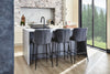 Bring vintage casual style into your dining room with the Demi counter-height stool. The contoured design and sloped arms are decidedly sophisticated, while diamond-shaped stitching shows off the padded interior for the perfect decorative detail. A metal frame and polyester upholstery create an incredibly durable yet elegant seat. Your guests will clamour to sit in this stylish stool.