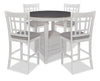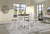 Gather your family, large or small, around this five-piece Dena dove grey counter-height dining package to make memories. Oak veneers are applied over a rubberwood base to create an appealing look. Meanwhile, high-density foam makes sitting through multiple courses or hours of homework comfortable, as the leather-look cover offers breathability with style. A compact design allows this set to fit into a limited area – yet if everyone comes over, use the removable table leaf for an extra 18 inches of space. Put this Dena five-piece set at the heart of your family's magical moments.