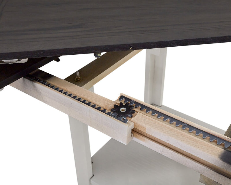 Gather your family, large or small, around this Dena dove grey counter-height dining table to break bread and make memories. Oak veneers are applied over a rubberwood base to create an appealing look in your chic eating space. Around the edge of the surface are bowtie-shaped connectors to hold the pieces together with a homemade feel. A compact design allows this piece to fit into a limited area – yet if everyone comes over for a special meal, you can use the removable table leaf for an extra 18 inches. Put this Dena table at the heart of your family's magical moments.