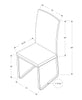 Show off these two up-to-the-minute kitchen chairs with confidence. They are made of a smooth upholstered grey leather look material with sturdy contemporary chrome metal bases. Enjoy the enhanced comfy seat that will make a statement in your small home, apartment or condo. These armless dining room chairs will slide perfectly under the table to save space when not in use. Don't forget to match with an identical kitchen table to complete your stylish kitchen or dining room collection.