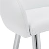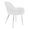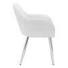 No need to rest your elbows on the table as these dining chairs with armrests provide a convenient place to put them while seated. Designed so that the chairs can be pushed in when not in use, the integrated armrests are set to the perfect height while sleek and comfortable. Upholstered in a white leather-look fabric with minimal stitching for a clean look, the padded back and sides curve around the cushioned seat for a soft feel. Angled and tapered chrome metal legs add a stylish appeal. Sold as a 2-piece set, these chairs have a modern-meets-retro style ideal for an eat-in kitchen or formal dining room, or as accent chairs in other rooms.