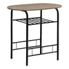 Create a compelling and cohesive aesthetic in your space with this three-piece dining set, which includes one table and two chairs. Perched atop curved metal legs, the oval table is crafted from manufactured wood, while the two chairs feature a ladderback design with tubular metal detailing. Stylishly finished in a dark taupe laminate seat and table top combined with black metal, this set blends with a variety of color schemes.