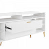 The Manhattan Comfort DUMBO Collection brings tasteful modern glam to your home! This collection features "Snap It" Assembly - no tools required for full assembly of each product! With its unique vertical ribbed drawer fronts, full extension and soft close drawers, and stylish splayed metal legs, the collection is not only a true beauty but also made with quality! Stunning variety of colors with sleek metal horizontal handles available. DUMBO is what you have been looking for all this time! Make your house a home with the DUMBO Collection.