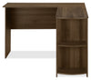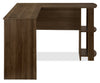 With a generous work surface and storage space, this Eason L-shaped desk is ideal for students or offices with limited space. Two convenient shelves provide room to neatly organize books, binders and school supplies. Plus, the desktop is divided into two segments, so you can change up your workspace. Finished on all sides in a neutral tone, this space-saving piece is intended for placement in a corner but can be positioned anywhere in a child's bedroom, a student’s dorm room or in your office.