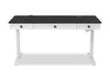 Experience ultimate convenience and efficiency in your office with this Elevate height-adjustable desk. This sleek and modern desk offers wireless charging and multiple USB ports, keeping you fully charged throughout the day. Its three drawers let you keep your office essentials close at hand, while the middle drawer can flip down to become a keyboard tray. Plus, the power lift levelling system ensures a seamless transition between sitting and standing. The dark grey handles and five-piece drawer fronts add an elegant touch to this versatile desk. Increase productivity and streamline your workspace with the Elevate.