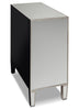 | Hardware | Chrome gives a shiny, mirror-like look to the pull rings. The pull rings are stylish on their own, and also complement the bevelled-mirror panels on the cabinet's exterior. |