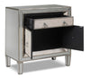 Organize your living room or bedroom in style with this Enna 32-inch accent cabinet. With a two-door cabinet and a single drawer, there's plenty of room to stash small items. Mirror panels and a taupe grey fabric finish complement each other for a modern, glamorous look. Enjoy this accent piece on its own or with other furniture from the Enna collection.