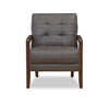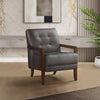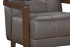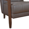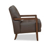 Effortlessly graceful and elegant in every aspect, this Enzo accent chair is a paragon of timeless style. Wrapped in gorgeous dark brown genuine leather along the front seating area and faux leather on the back and sides, this piece will make any room feel complete. Its stunning wood frame complements the dark upholstery to create a picturesque display of mid-century modern and retro designs. Plus, biscuit tufting accentuates plush cushions, reinforcing this chair’s vintage aesthetics. Lean back in sophisticated style as you revel in comfortable high-density foam cushions and sleek, eye-catching details with the Enzo.