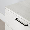 | Hardware | Black metal handles on the drawers. |