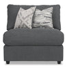 If you're looking for a way to ensure your living room suits your needs, this Evolve modular armless chair from Scott Living will be right up your alley. With its soft lines and low profile, this piece adds a subtle chic style that will complement most interiors. The charcoal linen-look fabric and lavish feather- and foam-stuffed cushion welcome you to lounge comfortably all night. Trendy dark-stained plastic legs elevate the piece, adding a charming appeal. Add matching corner chairs for more seating or ottomans for storage and let your living room evolve into something that is just for you.