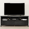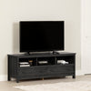 Equally suitable for use as a stand to place your television on, or as an attractive and functional piece of furniture to store your media devices if your TV hangs on the wall, the Exhibit TV Stand will enhance any living room. Clean, simple lines and decorative metal handles make this an attractive storage solution which will keep your home media area tidy and organized while complementing any home décor. The Exhibit TV Stand is the perfect surface to place LCD or plasma TVs up to 60” wide.The TV stand features 2 spacious drawers with smooth metal slides, and 3 wide and open compartments which have been carefully designed to provide adequate ventilation for electronic devices. An opening in the back panel is ideal for easy and convenient wire and power bar management – no more trailing cables!