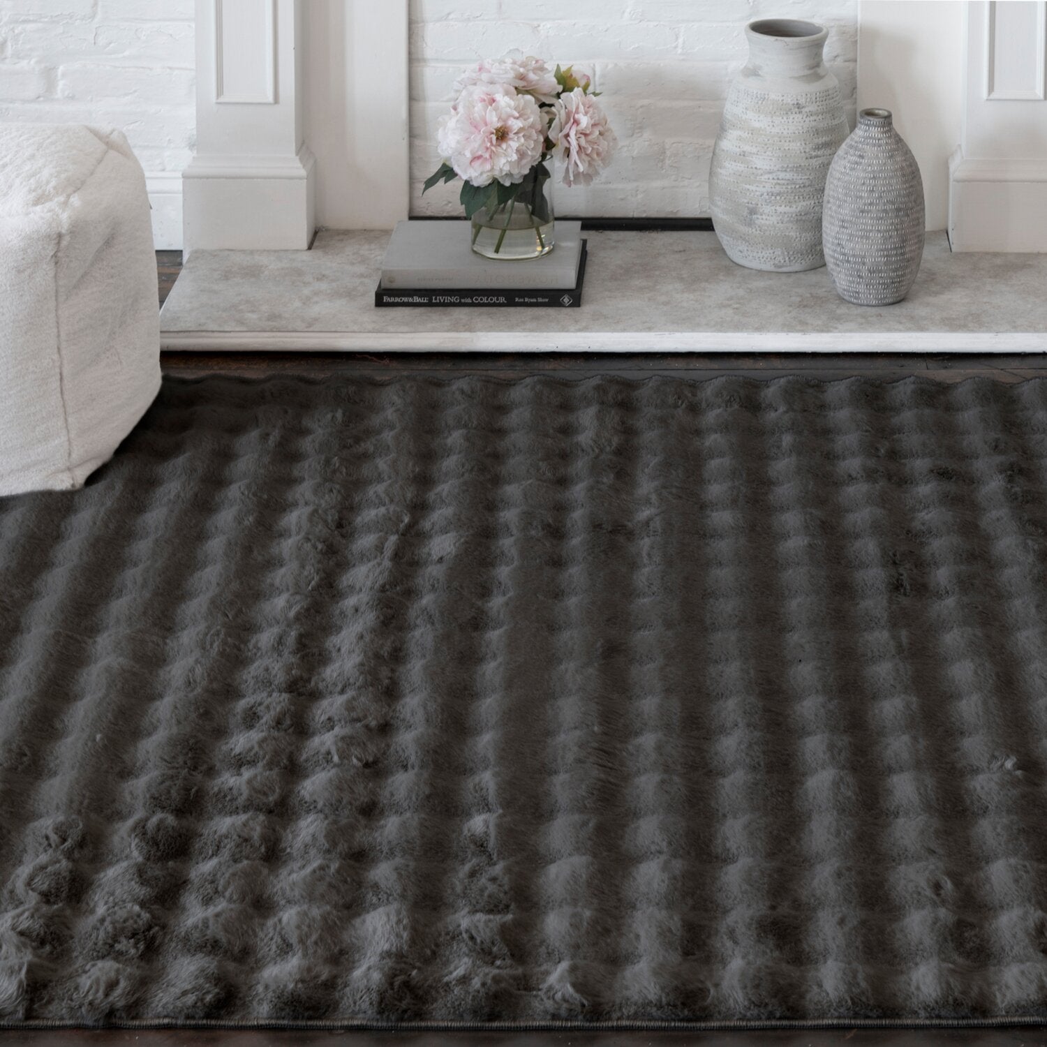 Add a cozy touch of warmth and style to your home with the Bubble faux fur area rug. Its chic faux fur brings a playful whimsy and inviting softness to any room, making it a truly delightful accent for your space. Perfect for your living room, bedroom or nursery, this rug effortlessly elevates the atmosphere with its luxurious texture. The neutral hues blend beautifully with any decor, ensuring it’s a versatile and timeless piece you’ll love for years to come.