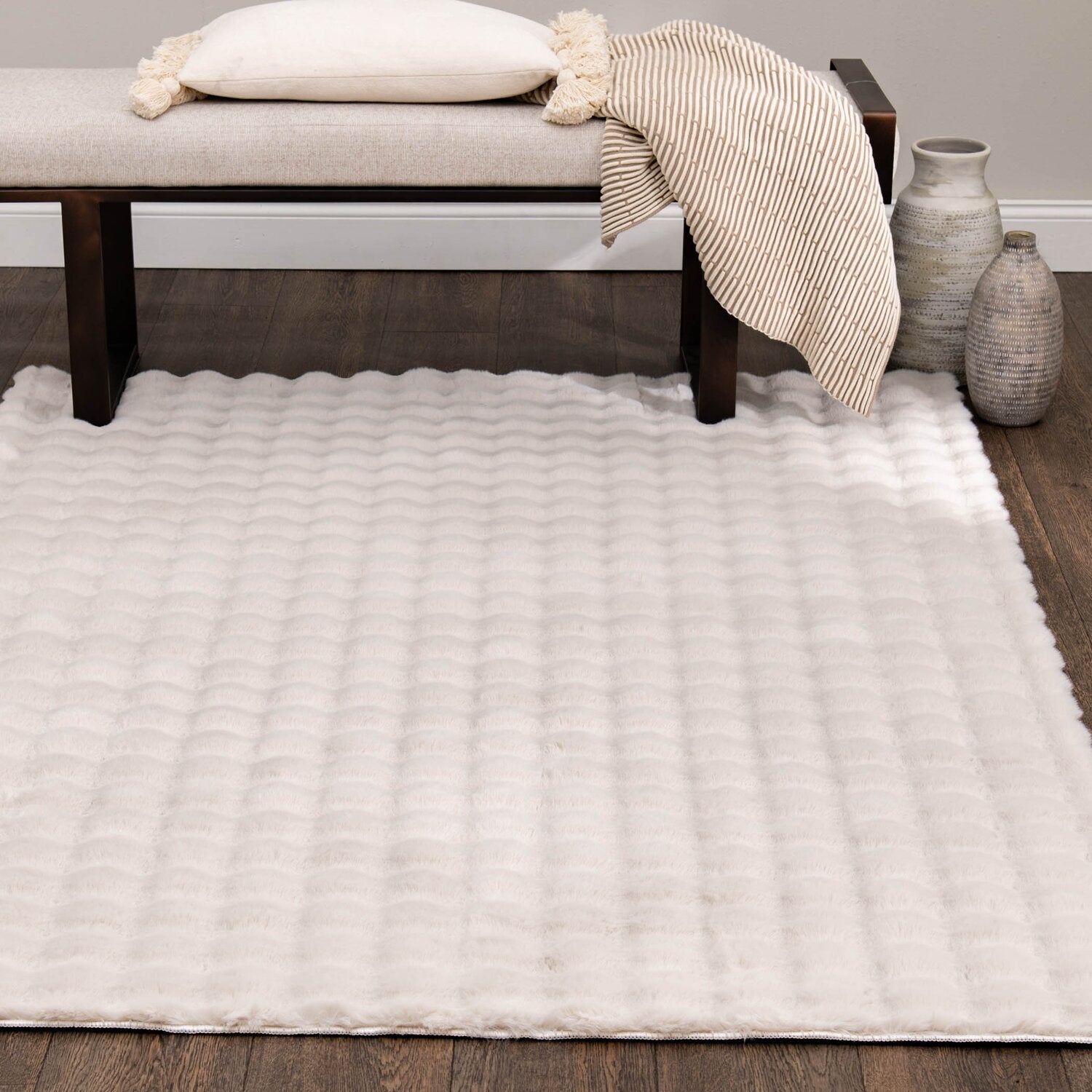 Add a cozy touch of warmth and style to your home with the Bubble faux fur area rug. Its chic faux fur brings a playful whimsy and inviting softness to any room, making it a truly delightful accent for your space. Perfect for your living room, bedroom or nursery, this rug effortlessly elevates the atmosphere with its luxurious texture. The neutral hues blend beautifully with any decor, ensuring it’s a versatile and timeless piece you’ll love for years to come.