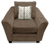 Give your home an inviting and chic appeal with this brown Febe condo chair. Cozy chenille covers the entire furniture frame for a seating space you'll want to relax on. The seat cushion is filled with plush high-density foam, while the back cushion contains soft fibre fill to comfort your back. With flared armrests and designed for smaller living spaces, this condo chair is a fantastic complement to many different home decor styles.