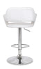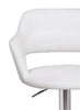 Add some adventure to your dinner time with the Finn white bar stool. Smooth faux leather is stuffed full of high-density foam, perfect for sinking into a multi-course meal. High armrests curve around into a tall back to keep your spine well supported all throughout your meal. An open space on the lower back helps keep things cool by letting ventilation circulate. Take yourself to new heights with the manual gas lift, which lets you raise or lower the chair to perfectly match your counters. With the Finn livening up your dining space, your meals are about to get so much brighter.