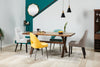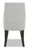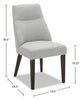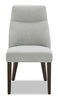 Share your favourite mealtime memories with your friends on this Gabi accent dining chair. Light grey linen-look fabric wraps around the slightly curved backrest and over the squared seat for a chic feel. A stitching line subtly divides the headrest from the chair, creating a clean modern look. High-density foam cushioning makes it easy for you to enjoy long conversations and multi-course dinners in comfort. Finally, each of the tapered legs are finished in a medium-dark brown to highlight the wood grain design.