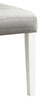 Dazzle your dinner guests with the sparkle of this five-piece Garbo dining package. Bands of sparkling silver wrap around the glossy white base for a subtle yet glitzy look to this piece. A glass insert protects the glittering black and silver beads sitting in the centre to charm your company. Soothing velvet has a light grey tone for a luxurious look that won't outshine your dining room decor. Padding the chairs are thick layers of high-density foam, sewn into horizontal channels to emphasize plushness. Let style and elegance join you for a meal at this Garbo dining set.