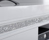 Create a dazzling entertainment space with the sparkle of this Garbo TV stand. Accommodating TVs up to 70 inches, a band of sparkling silver lines the front of the piece for a subtle yet glitzy look to elevate its white tone. An open shelf and drawer are perfect storage spaces for your media consoles, video game controllers and extra cables. Plus, this TV stand also has two cabinets with adjustable shelving to store items of various sizes. Its minimalist design allows you to make it really pop with colourful accents without distracting from its modern details. With the Garbo, let style and elegance join you for a movie night.
