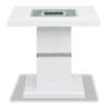 | Accent Details | One silvery band wraps around the pedestal base, while silver and black beads fill the tabletop's centre. |