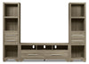 Create the perfect media room with this Glendale three-piece entertainment centre. For televisions up to 60 inches, this stand can hold your big screen TV – perfect for family movie nights. Drawers let you organize small items, like remotes, game controllers and extra batteries, while open shelves provide a place for your cable box, game console and decor. Plus, the grey finish is light and airy for a sophisticated look.
