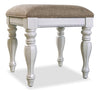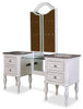| Storage Options | Vanity comes with four drawers and a glass shelf. Seat top lifts up to reveal a small compartment. |