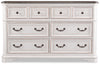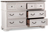 Embrace the feeling of having a secret, countryside retreat in your own home with this stunning Grace dresser. The antique white finish and matching antiqued brass handles are hand-rubbed to give this piece the feeling of a modern classic. A distinct rounded-butterfly design of the brushed oak top gives lots of extra space for your knick-knacks. With six spacious dovetailed drawers for holding all your treasured possessions, this dresser will help make your bedroom into the relaxing cottage of your dreams. Enjoy this piece on its own or pair it with the matching mirror (sold separately).