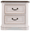 Embrace the feeling of having a secret, countryside retreat in your own home with this stunning Grace nightstand. The antique white finish and antiqued brass handles are hand-rubbed to give this piece the feeling of a modern classic. A distinct rounded-butterfly design of the brushed oak top give lots of extra space for your knick-knacks. A pair of USB ports tucked in the back blend modern convenience with traditional charm. With two spacious dovetailed drawers for holding all your treasured possessions, this nightstand will help make your bedroom into the relaxing cottage of your dreams.