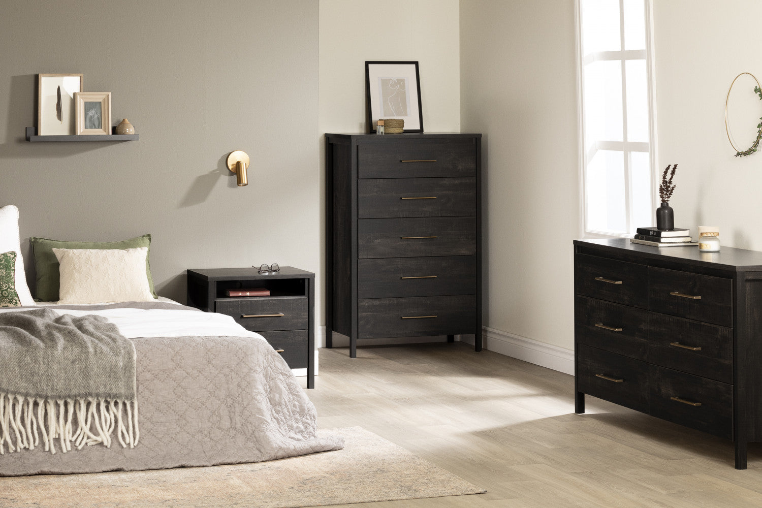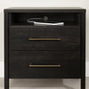A more than useful nightstand. This nightstand will be a real beauty in your bedroom! The two large drawers provide storage for all the items you don’t have room for in your wardrobe, like your underwear or socks. The open space can hold everything you need to have close at hand, like a book for your nighttime reading. And the surface is great for holding everything you use regularly, so it’s close to you: your cell phone, an alarm clock, a lamp to adjust the lighting in your room, etc. A contemporary bedside table this contemporary piece can fit into all types of decor! Two things set it apart: the slim minimalist handles and square legs, which give it a very trendy clean style. Pair it with other furniture from our gravity collection, for a full set.