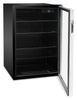 For precise cooling and temperature control, look no further than Haier’s 150-can-capacity beverage centre. With its stunning metal-rimmed glass door and black exterior, this little unit looks elegant whether built-into a home bar or simply placed on your dorm room floor. Protect your drinks from thirsty house guests (or mooching roommates) with a security lock and key. Four full-width glass shelves support your beverages and bright LED lighting automatically turns on when you open the door for easy organization.