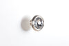 | Accent Details | Crystal knobs stand out against the white finish. |
