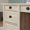 Sophisticated, stately and impressive are all adjectives that describe this Hammond executive desk. This grand workspace features a spacious top surface with room for your computer, a lamp or home decor. No need to stress about storage, this piece includes four drawers for easy reach of office essentials, while the lower drawers hold letter- or legal-size hanging files to keep your documents organized. Plus, the centre drawer can flip down for keyboard placement. Finished in a chalked off-white tone, this executive desk is the stylish elevation that your office needs.