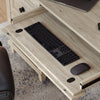 | Storage Options | Seven drawers, two for files and one that can flip down as a keyboard tray. |