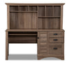 Countrified roots and contemporary flair combine in this charming Harbour View desk and hutch. Finished in a salt oak colour, the horizontally-slatted doors and solid wood knobs radiate shaker-style simplicity with the perfect touch of splendour. Dedicated computer tower storage and a slide-out keyboard tray make working at this desk a comfortable task. And with three drawers and additional shelving in the hutch, you have plenty of space to organize your office essentials.