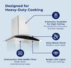 With Hauslane’s glass wall mount canopy range hood, you won’t have to choose between an oven hood vent that’s stylish and one that works. This wall-mount kitchen hood provides both superior design and performance. It’s perfect for novice cooks and home chefs alike. The chimney kitchen hood is compact and can be converted to ductless. You’ll love how fresh and sleek the stainless steel finish looks in your kitchen. The onyx black panel and touchscreen controls look effortlessly modern. The stainless steel hood vent’s overall appearance is luxurious yet understated. But it isn’t just all about looks with this stainless wall mount range hood. Its superior performance is backed by cutting-edge technology. The high CFM power sucks away cooking fumes, odours and chemicals. Baffle filters trap grease before it can drip down onto your meal, countertops, and cabinets. You can choose from three settings to meet your cooking needs. The delay auto-shutoff means you never have to worry about whether you turned the glass vent hood off after a long night of cooking.
