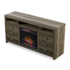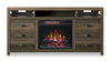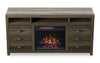 This Haven TV stand with electric fireplace makes any room feel like home. Supporting TVs up to 70 inches or 105 pounds, this unit includes a media shelf and two side cabinets for storage. The firebox heats rooms up to 1,000 square feet, great for small spaces, and because safety is paramount, fire prevention technology monitors the plug and shuts the system off automatically if the temperature gets too high. The Canyon Lake Pine finish completes the ambiance of beautiful flame effects that can be operated with or without the heat for year-round enjoyment.
