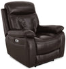 Build your special relaxation spot around this Hayes power reclining chair. Designed for your ultimate enjoyment, the straight seam lines and plump headrest invite you to kick off your shoes and sink into this comfortable seat. Luxurious genuine leather covers the cozy, high-density foam stuffed into the seat, back and footrest. For a treat, use the power recline and power headrest buttons to find your perfect TV-watching position.