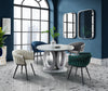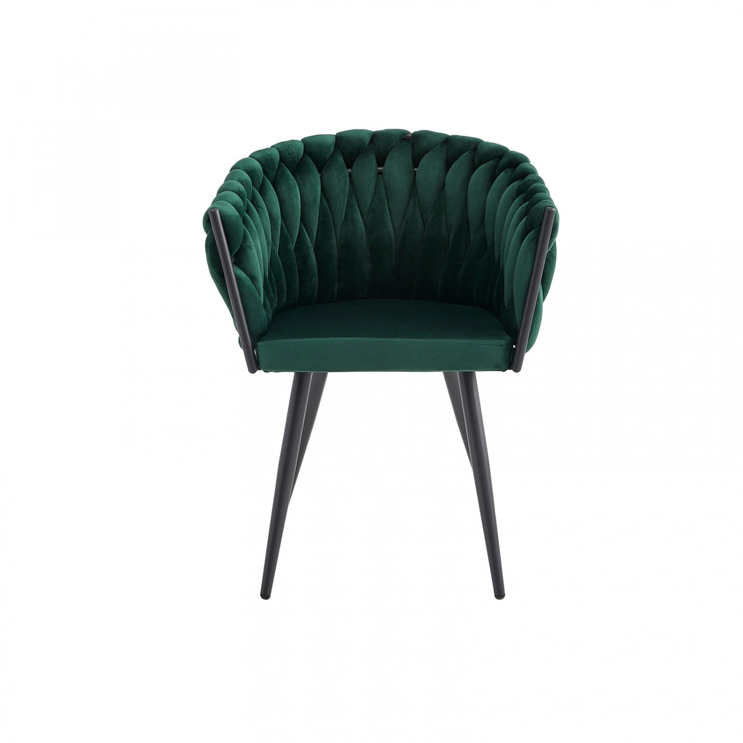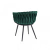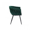 Introduce a little artistry to your dining room with the exquisite Hildy Collection. This stylish arm chair is a fantastic way to spruce up your modern dining area thanks to its contemporary low profile. The barrel design is cloaked in soft green velvet upholstery that weaves around the frame with a unique braided effect. Despite its artistic appearance, the contoured back and arms are padded with foam, as is the seat, providing ample cushioning and support. Metal framing and angled black powder-coated metal legs guarantee long-lasting durability, allowing the Hildy to effortlessly blend practicality and elegance as it becomes your dining room’s new statement piece. Other colours also available.