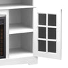 This Huntley electric fireplace TV stand captures functionality with a distinctive, contemporary design. This piece can accommodate a TV up to 65 inches and has glass cabinets with shelving inside to provide ample storage for your movies and electronics. Plus, two cubbyholes on the top offer easy access to your consoles. Heat up your living space, big or small, is thanks to the fireplace insert equipped with an eight-stage timer, three flame brightness levels and 13 thermostatic temperature adjustments. An LCD control panel displays settings and remembers the ones you prefer, so you can turn up the heat quickly for game nights.