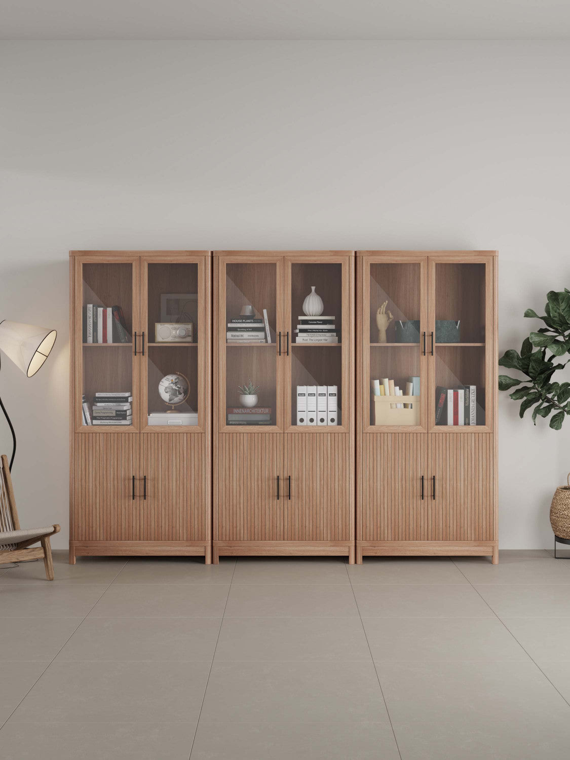 Jodie Mid-Century Modern 31" Bookcase Cabinet in Maple (6-Shelf) - Set of 3