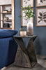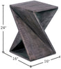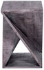 Sophisticated presentation is revealed at every angle with this funky Kelso side table. The sides of this table appear to twist in angular, origami-like folds to show triangular nooks and diagonal slopes. Perfect as an end table, plantstand or home decor display, this table is sure to get attention with its alluring shape. The mango wood construction provides reliable sturdiness while the grey finish gives off a rustic tone to this clever piece of craftsmanship. Whether holding up a splendid sculpture or a simple glass of water, this table looks good doing it.