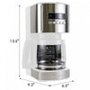 There's nothing better in the world than that first sip of coffee in the morning, and with this programmable 12 cup coffee maker you won't have to wait. Program the brewer the night before and wake up to the delicious aroma of perfectly brewed coffee or make a fresh, hot pot with the push of a button. The dishwasher-safe glass carafe holds up to 12 cups of brewed coffee and a non-stick warming plate keeps it hot and flavorful for hours. The attractive stainless steel profile with four color options will complement any decor and the narrow profile means more countertop space. With a charcoal filter to remove impurities from the water before brewing and state-of-the-art "aroma control" brewing technology that steeps the grounds before releasing the coffee into the carafe, you'll definitely be waking up on the right side of the bed from now on. Best of all, Kenmore products are covered by a 2-year limited warranty for your peace of mind.
