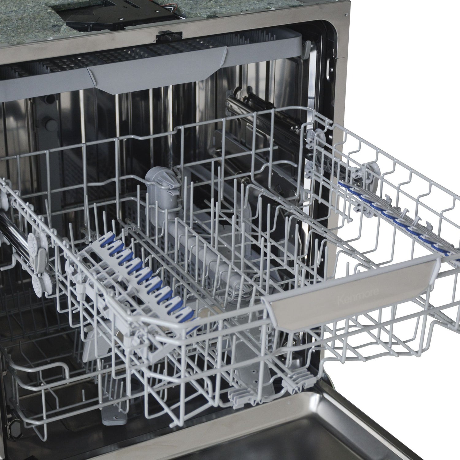 Make dish duty effortless with this Kenmore built-in dishwasher. Its ultra-quiet 45 dBA operation keeps your kitchen peaceful while powerful Smart Wash and Heavy-Duty cycles tackle even the toughest messes with precision. A convenient third rack and the EASYREACH lift system provide room for utensils, glasses and larger items, while Sanitize and High Temp options ensure a hygienic, spotless clean. Sleek, reliable and designed for modern kitchens, this dishwasher makes every load simple, thorough and completely stress-free.