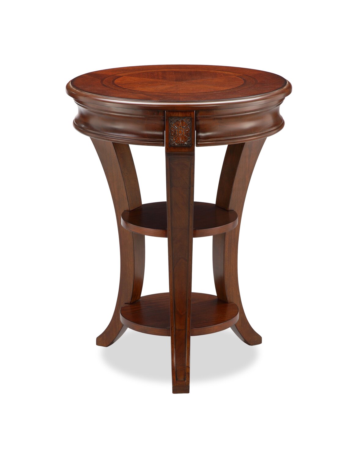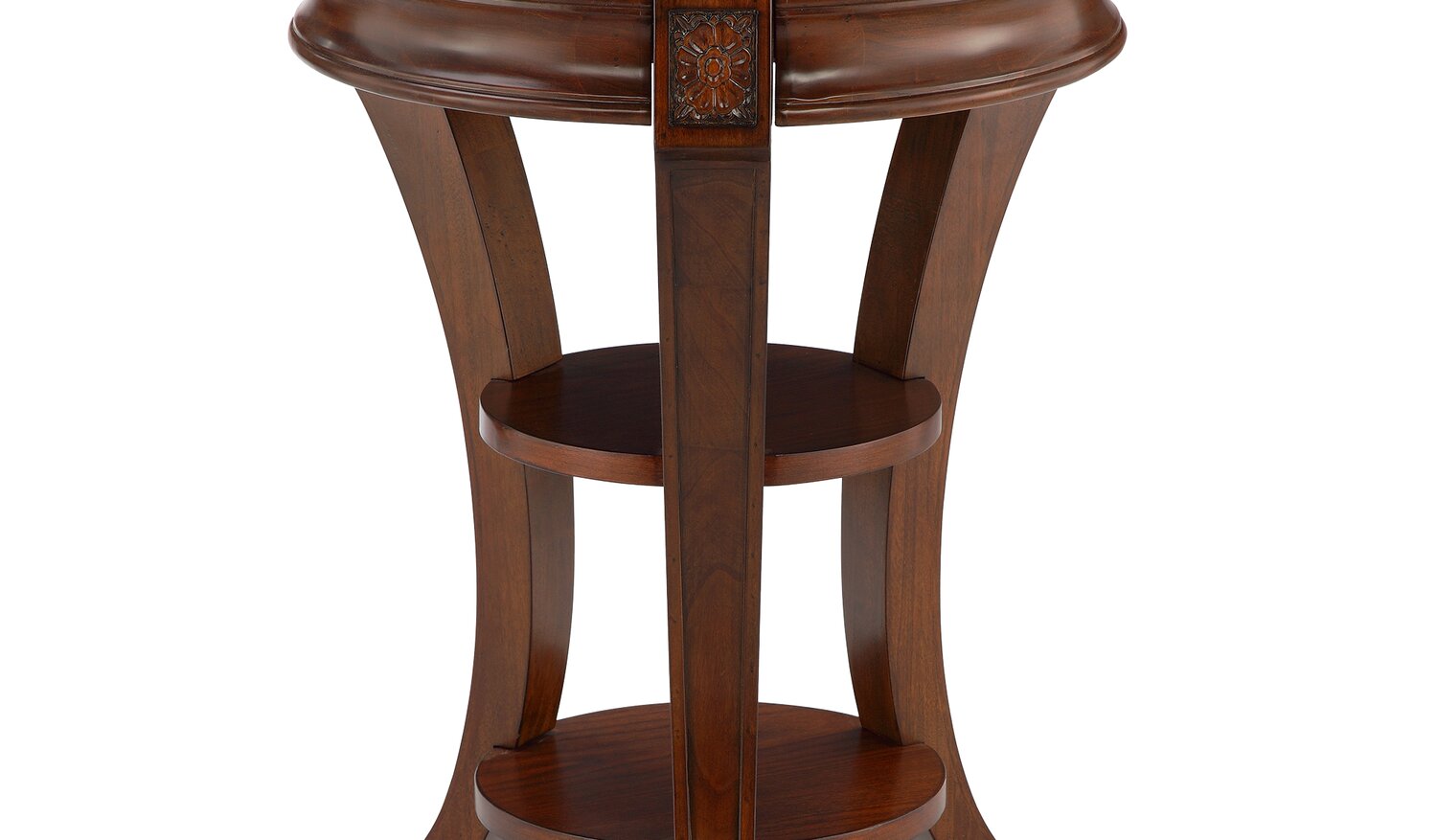 | Accent Details | Carved flower embellishments add subtle flair. Dual tones give the tabletop visual appeal. |