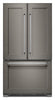 Your favourite foods will love their new home in this KitchenAid 22 cu. ft. counter-depth refrigerator with French doors and an interior water dispenser. The ExtendFresh™ Plus temperature management system uses sensors and a high-tech compressor so foods stay fresh and keep their taste and texture. A produce preserver absorbs ethylene gas emitted by many fruits and vegetables. This gas can cause them to over-ripen, so you’ll enjoy fresher fruits and veggies with this fridge. Plus, the FreshChill™ temperature-controlled full-width pantry lets you manually adjust the temperature and amount of cold air that enters the drawer, allowing you properly to store foods ranging from meat to produce.
