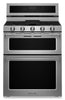 Combine a bold blend of professionally inspired styling with sleek touches for the home when you bring home the KitchenAid 30-inch double-oven gas range. Even-Heat™ true convection and conversion system make certain your chef skills won’t go unnoticed by ensuring the oven stays at a consistent temperature. With six cubic feet of capacity inside and five burners on top, you’ll have plenty of room to cook food for the entire family.