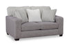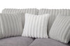 | Accent Details | Grooved light grey polyester wraps the back cushion and accent pillows, creating a unique appearance of contrasting fabrics. |