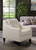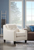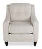 Give your living space a fashionable update with this pearl-coloured Kylie chair. Part of the exclusive Cindy Crawford Home collection, this piece is enveloped in off-white linen-look fabric for an elegant feel. Swooping armrests and plump cushions are outlined in matching fabric piping for a contemporary profile to suit your home's decor. A button-tufted back cushion highlights the fibre-topped high-density foam stuffed inside. This chair is the place to enjoy your family's time together.