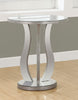 The mirrored finish on this table adds a glamorous, dramatic look while reflecting the design of the decor around it.